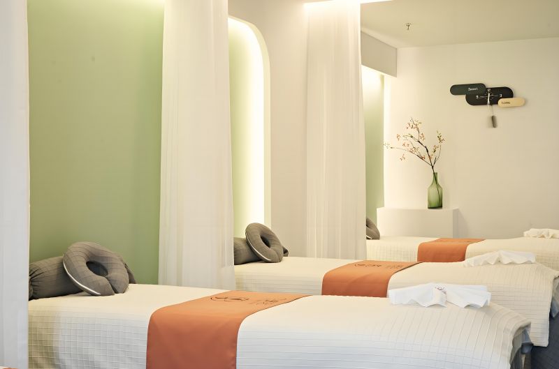 我们是一起来到spa会所,一进门,技师就热情的来打招呼并给我们换上拖鞋(那个技师和姨妈认识很多年了),我们换好拖鞋来到二楼,我们预定的双人间,按摩前要先洗澡(这样身体更好吸收),浴袍在包间里的衣柜里,我们准备换上浴袍去淋浴室,这个换衣服时候很忐忑(虽然都是女孩,但还是很害羞)我们穿好浴袍去洗澡。。